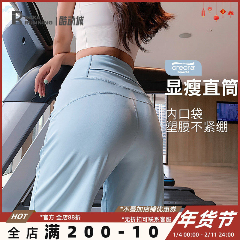奔跑吧卡卡休闲运动直筒裤宽松显瘦遮肉高腰瑜伽训练跑步长裤女夏