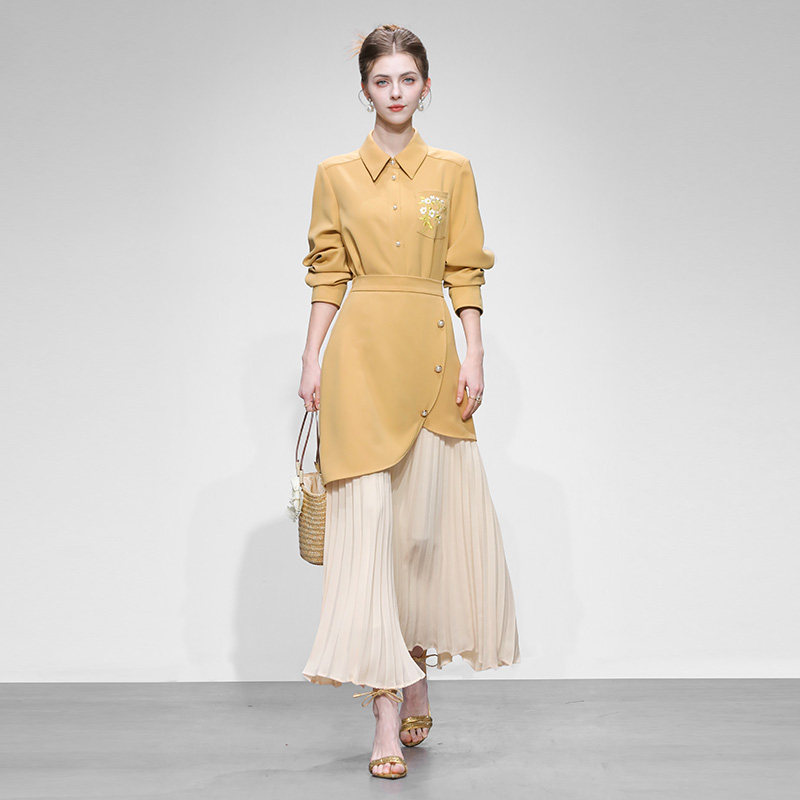 新款时尚高级感新中式国风女装黄色盘扣上衣连衣裙套装春装2025年