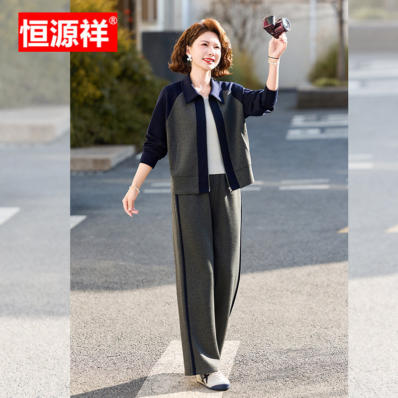 恒源祥妈妈春装时尚运动服两件套中老年女装外套新款休闲修身套装