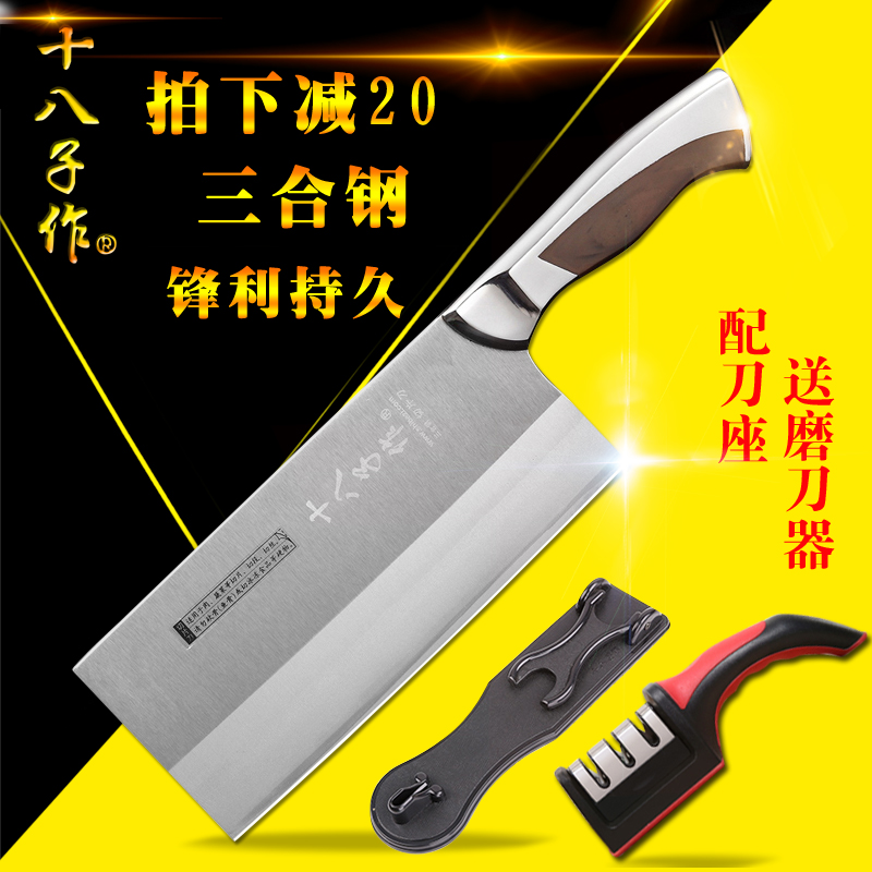 十八子作菜刀三合钢厨房刀具家用斩切刀切片刀不锈钢砍骨刀切肉刀