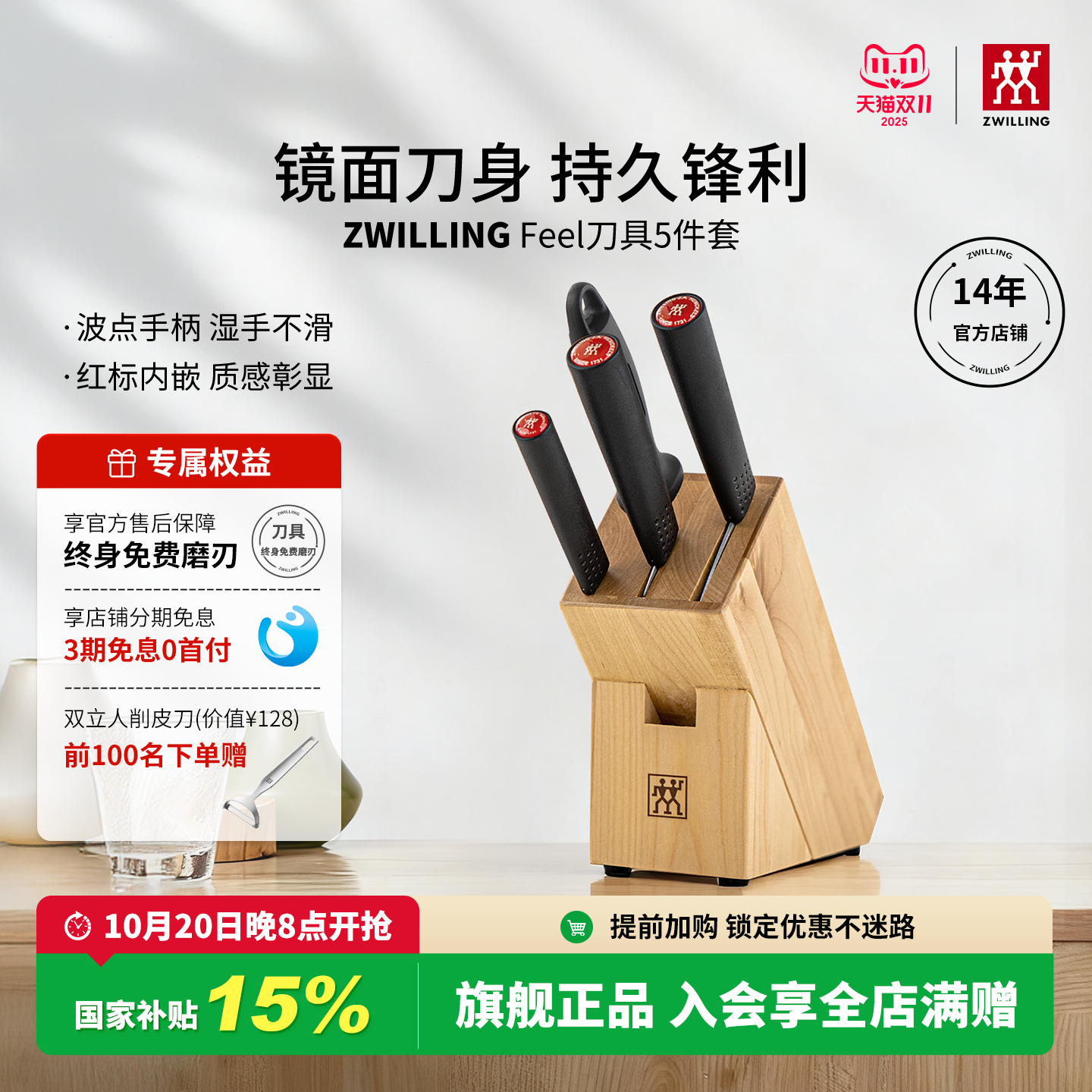 德国双立人刀具套装Feel系列家用不锈钢刀具家用不锈钢砍骨刀官方