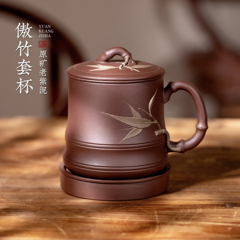紫砂茶杯紫砂杯陶瓷杯原矿纯手工带盖过滤盖杯办公杯大容量大茶杯