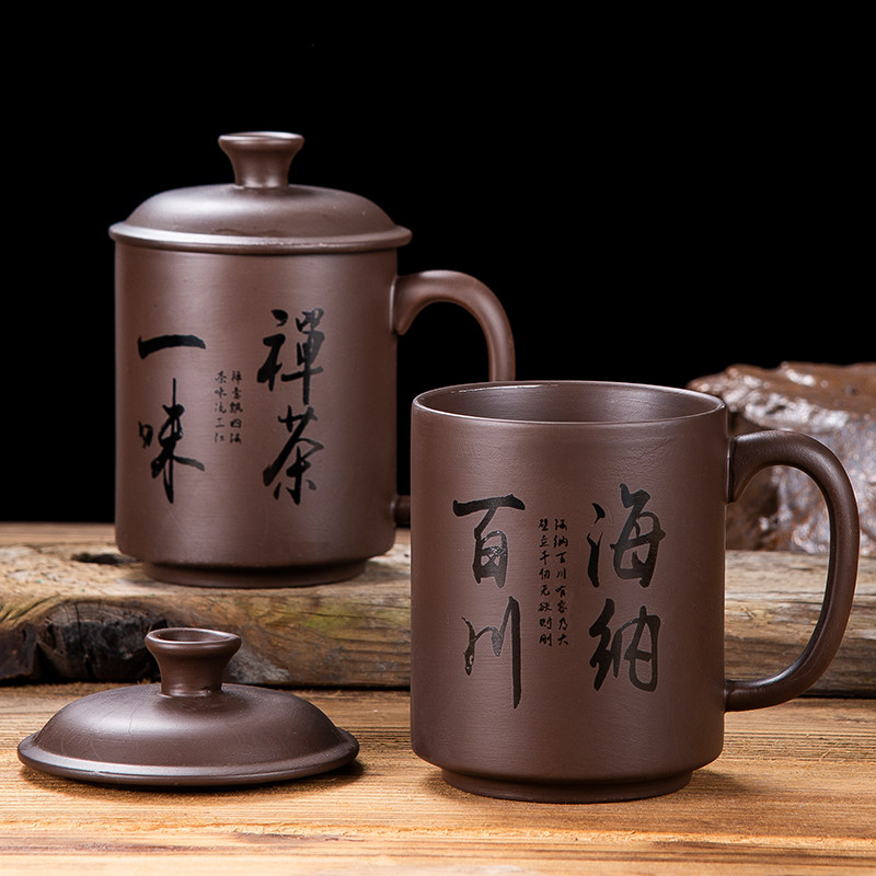 紫砂办公室水杯大容量男士办公杯泡茶杯带盖过滤个人杯子刻字定制