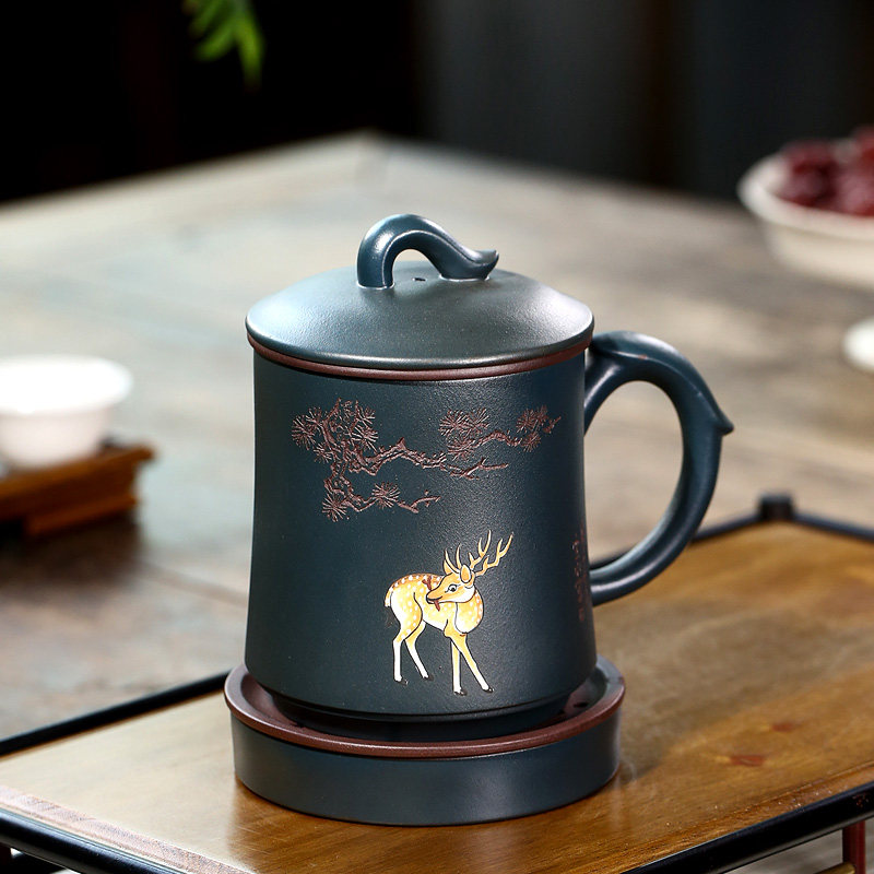 紫砂办公室水杯大容量男士办公杯泡茶杯带盖过滤杯子十二生肖定制