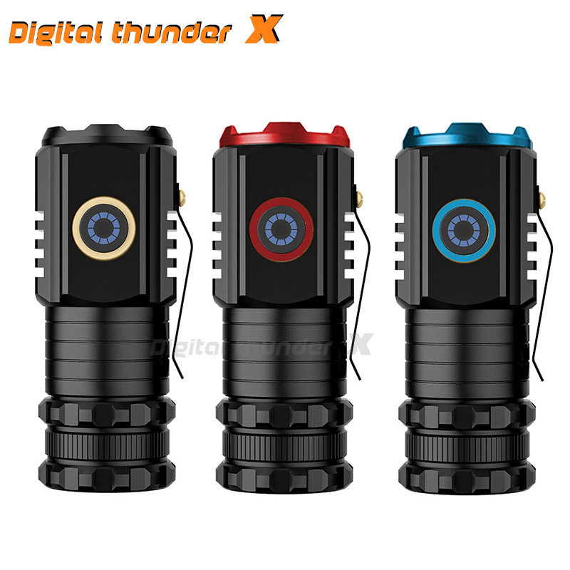 超亮USB可充电彩色小手电筒 强光防水袖珍家用便携迷你照明手电筒