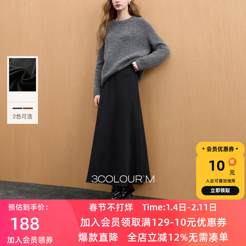 三彩【月影霜华】2026春季新款冰花丝绒半身裙A字裙高腰长裙C