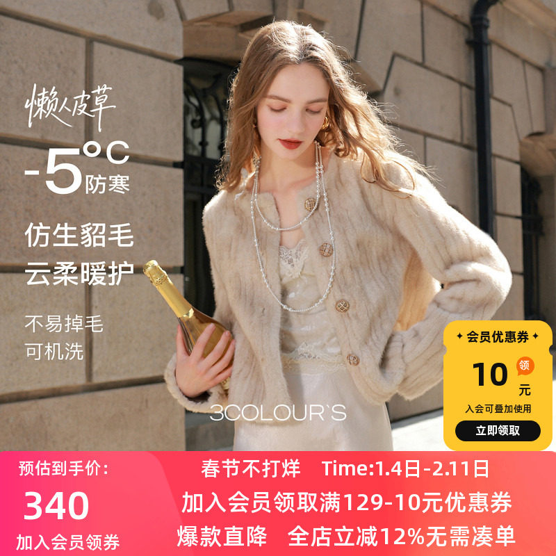 三彩女装2025冬季新款香风环保皮草仿绵羊毛外套毛绒保暖优雅女