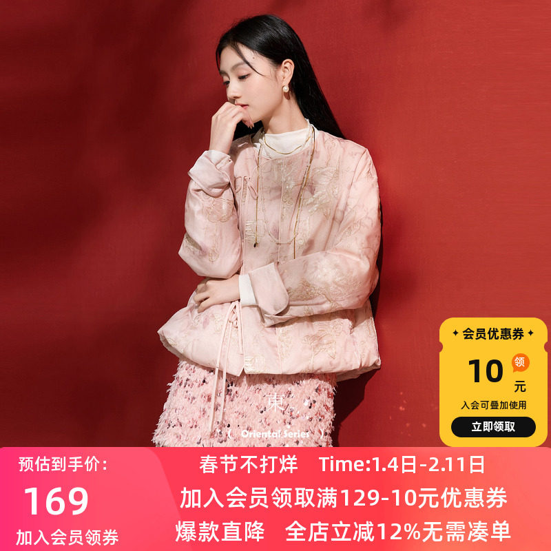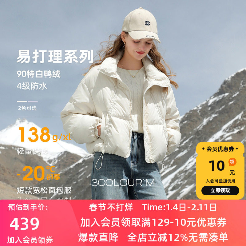【防水易打理】三彩2025冬季新款立领羽绒服90白鸭绒面包服M