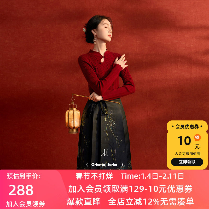 三彩【浮光跃金】2025冬季新款提花半身裙新中式马面裙长裙C
