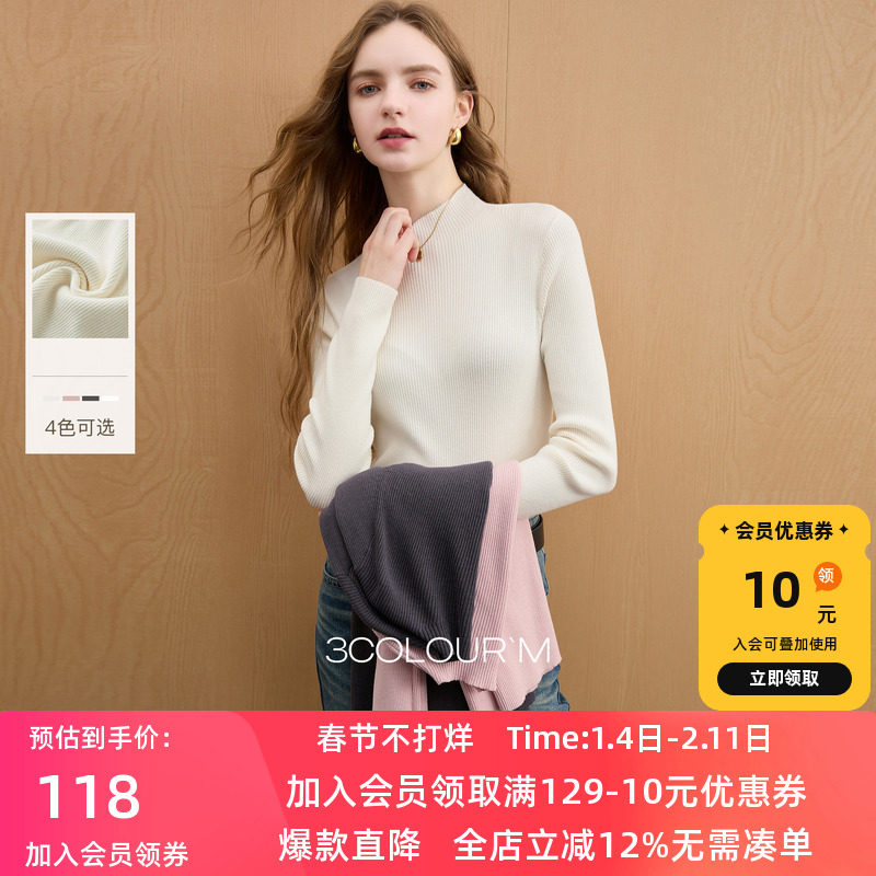 【抗起球】三彩2025冬季新款半高领针织衫打底衫修身长袖套头M