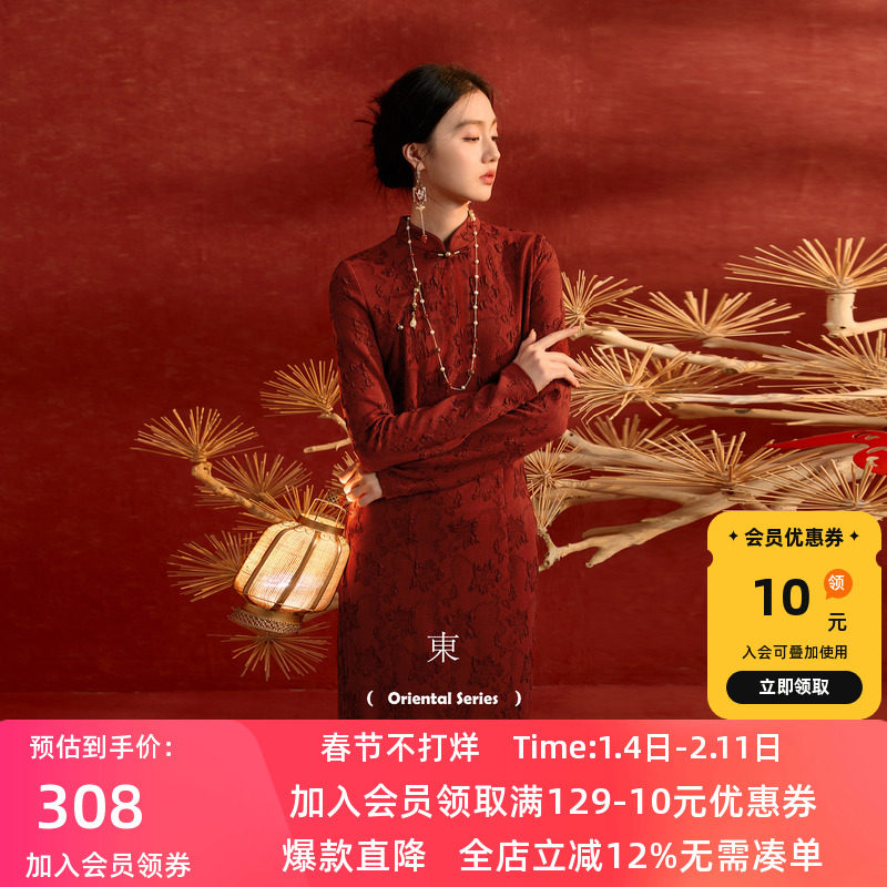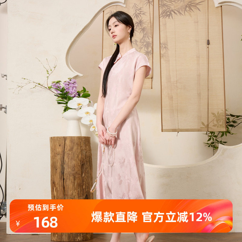 三彩【众里嫣然】2025冬季新款新中式连衣裙提花修身旗袍裙C