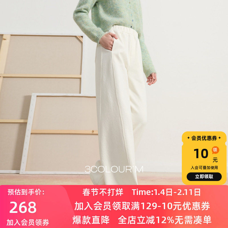三彩2025冬季新款加绒保暖休闲长裤高腰松紧直筒裤宽松简约M