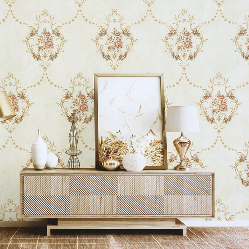 非自粘无纺布刷胶墙纸3D立体浮雕欧式田园客厅卧室温馨家用壁纸