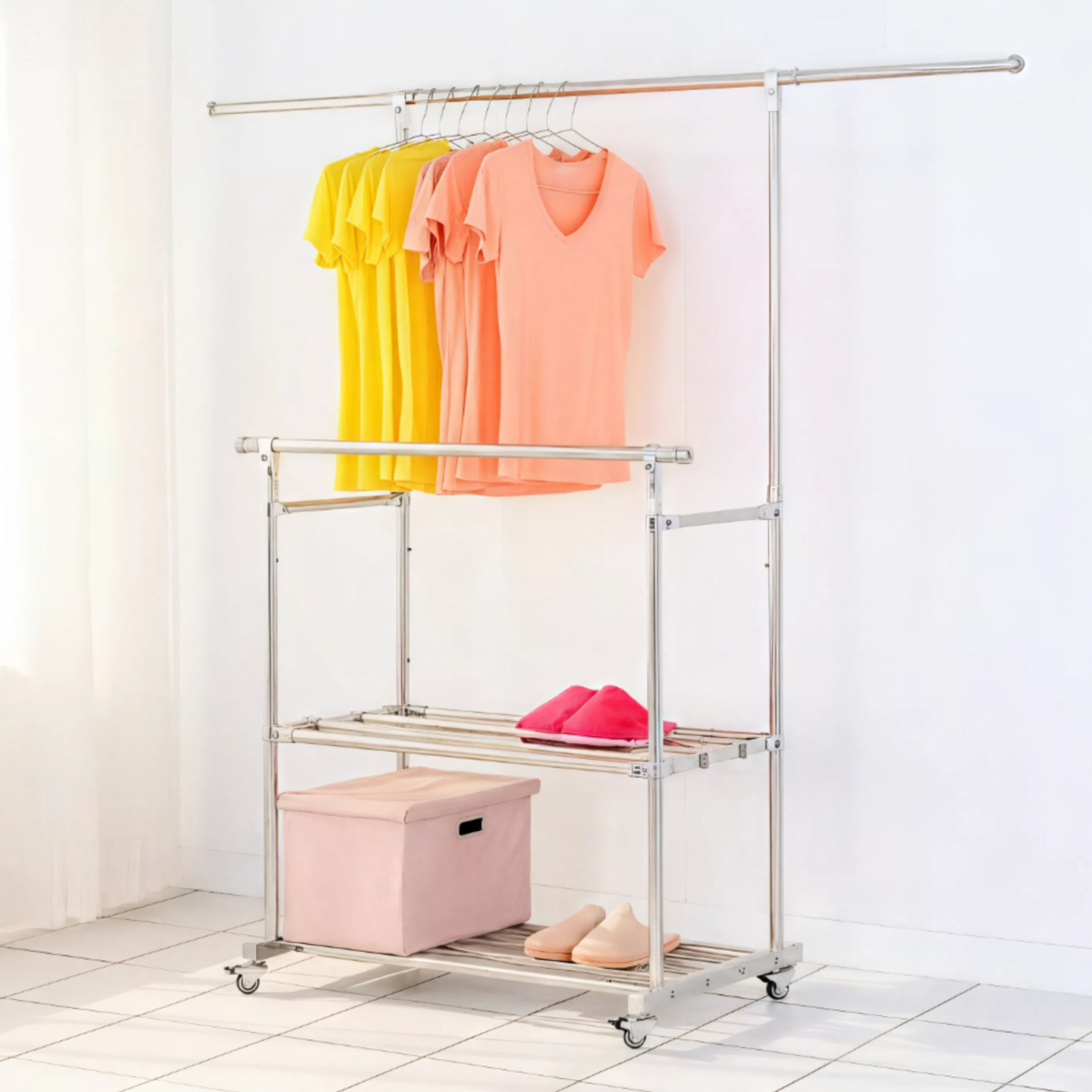 单杆晾衣架室内挂衣架服落地晒衣架折叠晾0301H-02衣锈不钢杆双层
