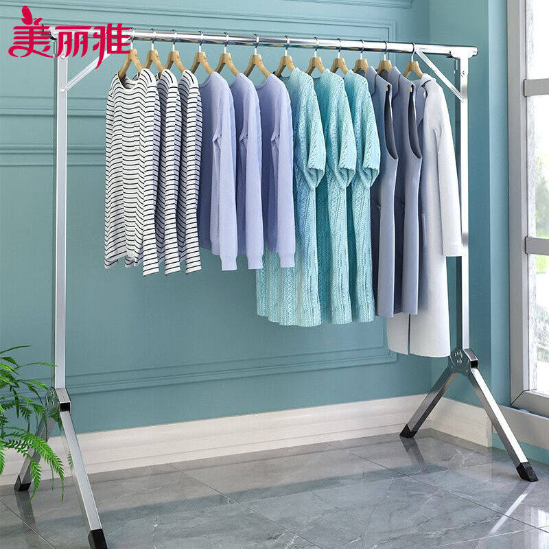 美丽雅晾衣架单杆不锈钢落地晒衣架折叠伸缩阳台挂衣架宿舍室内衣