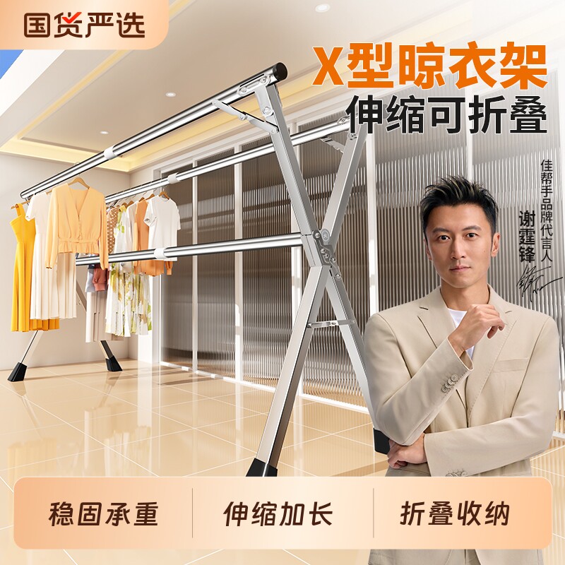 不锈钢晾衣架落地折叠室内外晒衣架双杆阳台挂衣架X型伸缩晾衣杆