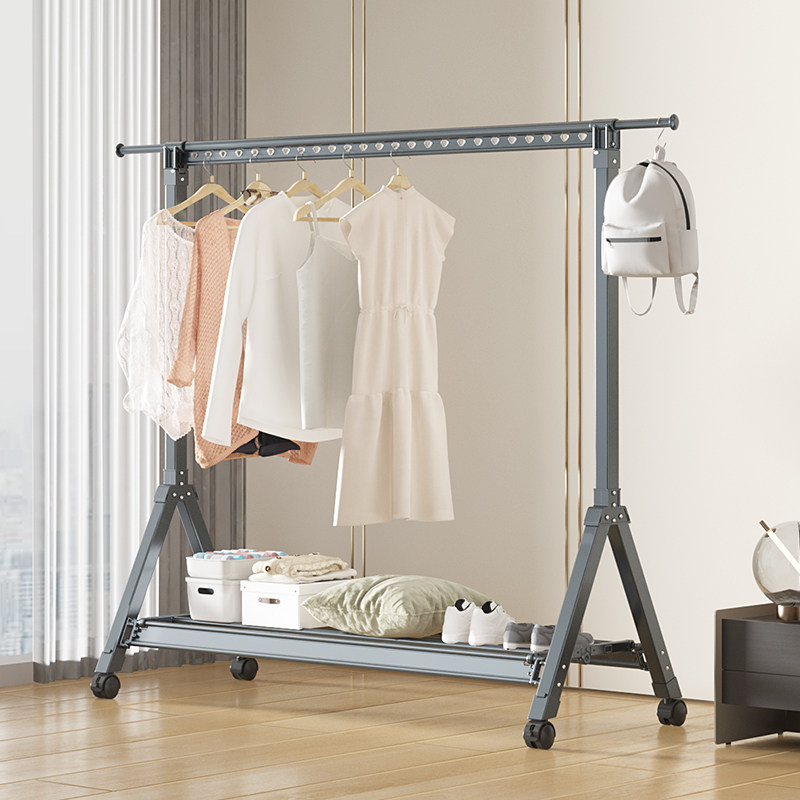 晾衣架落地家用卧室挂衣服折叠单杆简易室内宿舍移动晒凉衣帽架子