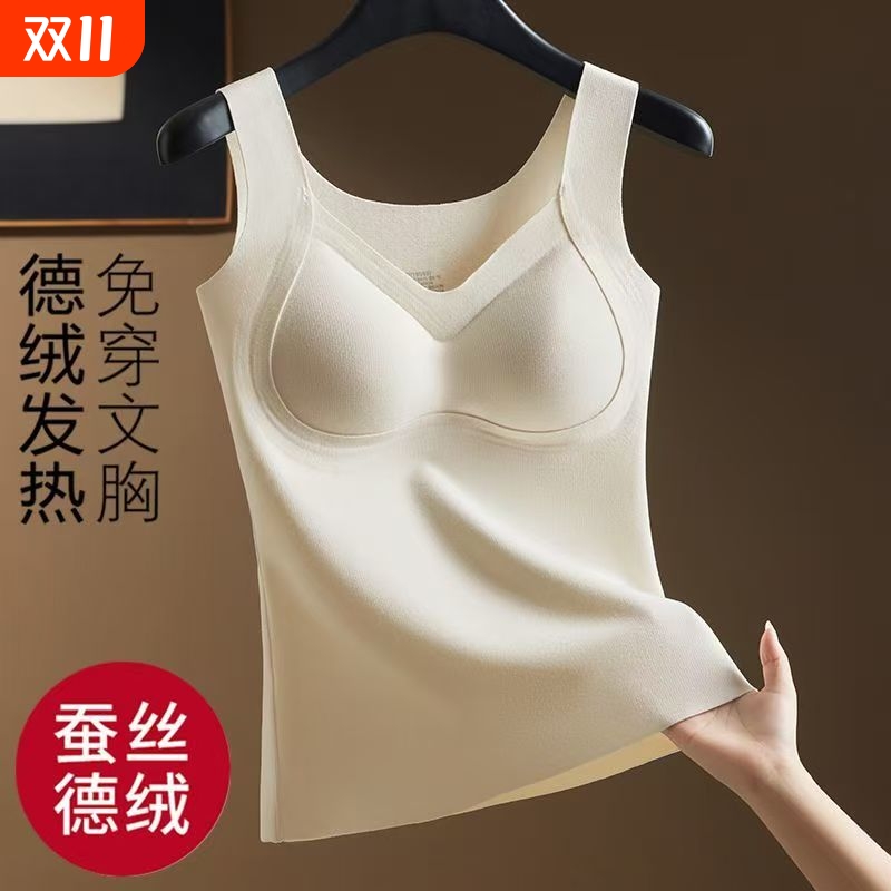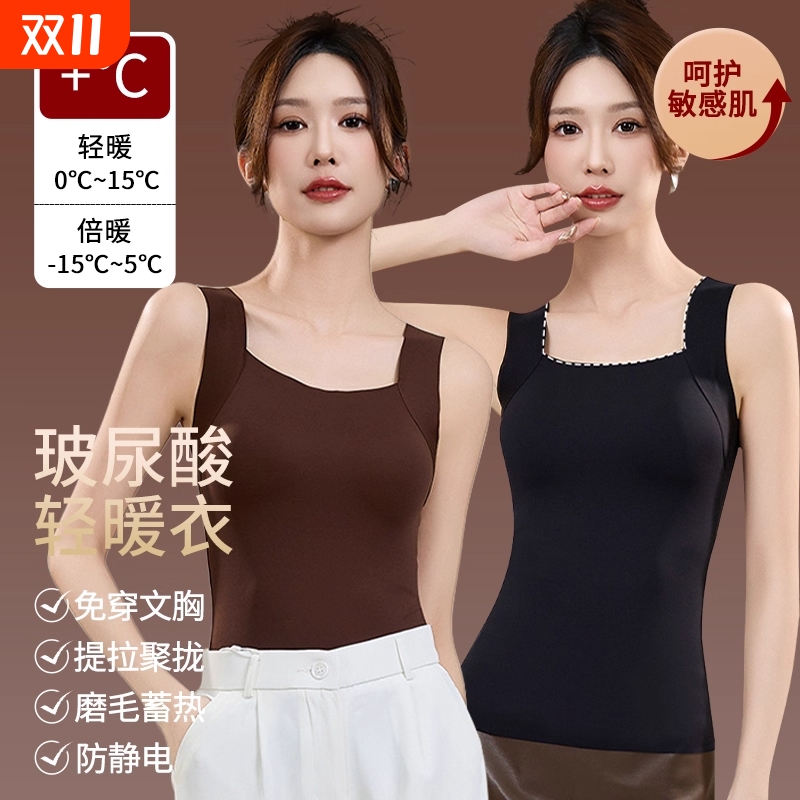 秋衣女保暖背心带胸垫秋冬无痕吊带打底衫内搭肌底衣文胸女玻尿酸