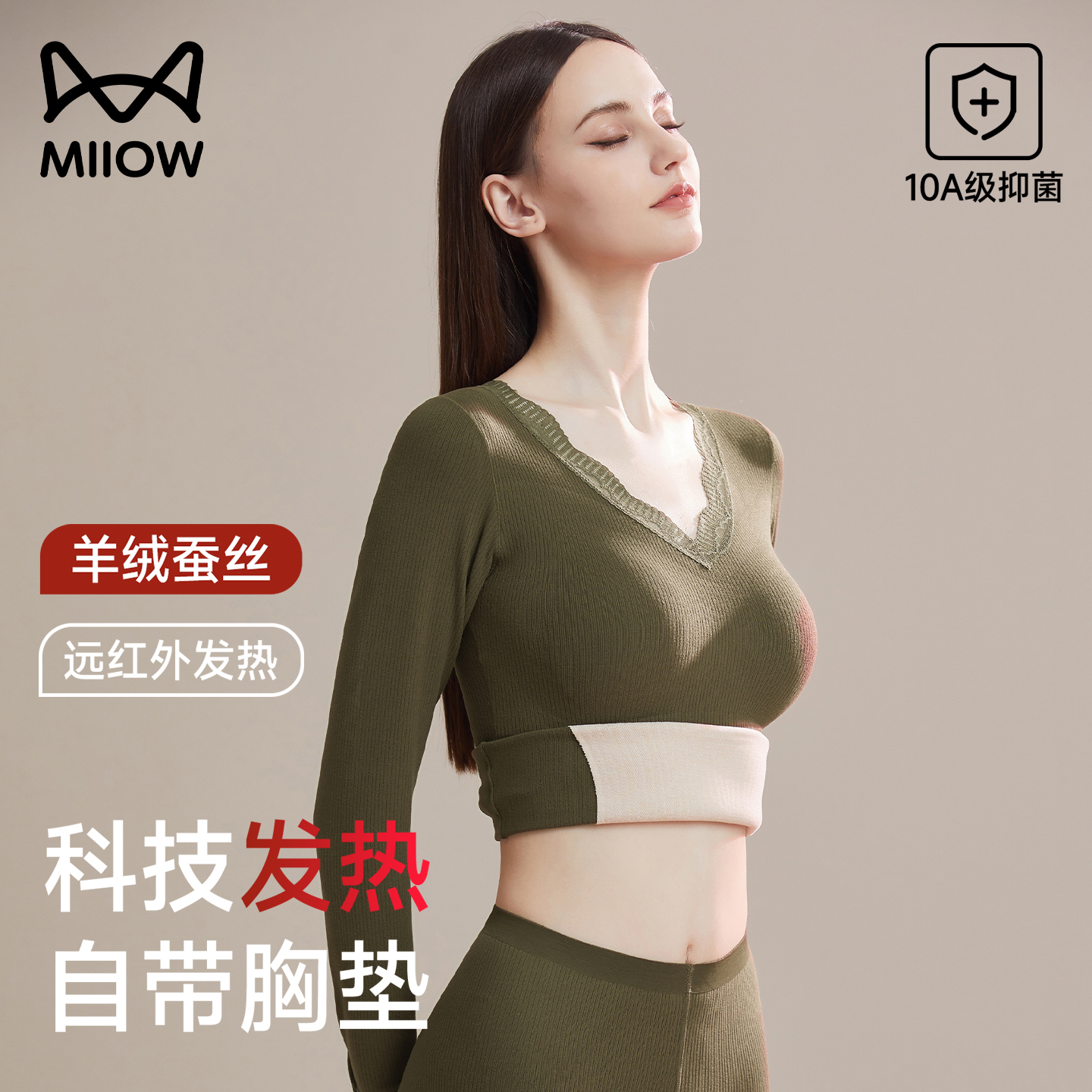 猫人秋衣女士保暖背心带胸垫无痕2025秋冬新款蓄热打底免穿文胸罩