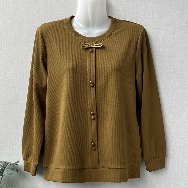 纯棉秋衣女单上衣加厚低圆领保暖打底内衣中老年人线衣全棉棉毛衫