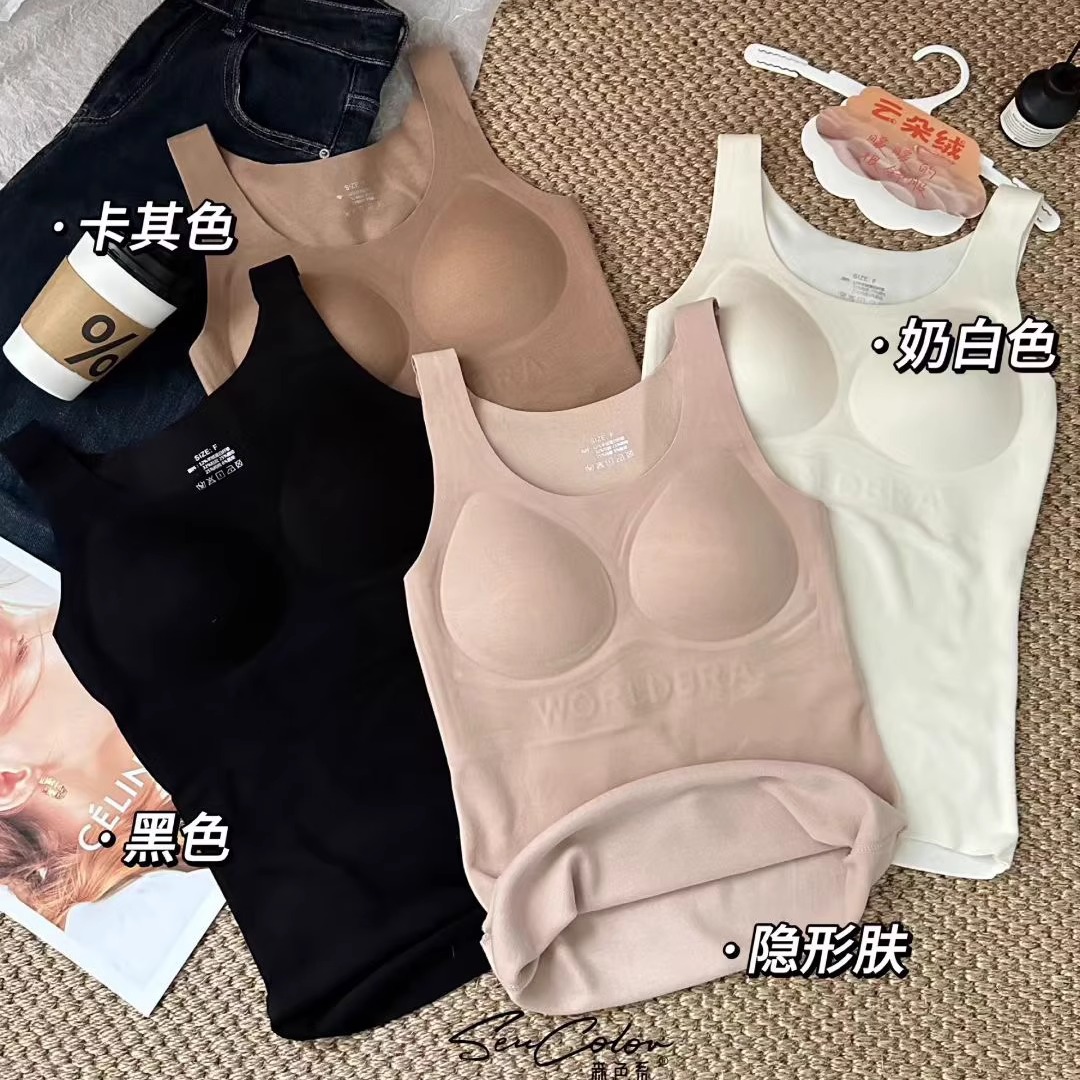 秋冬保暖修身百搭无痕秋衣女带胸垫免穿文胸打底透气锁温蓄热背心