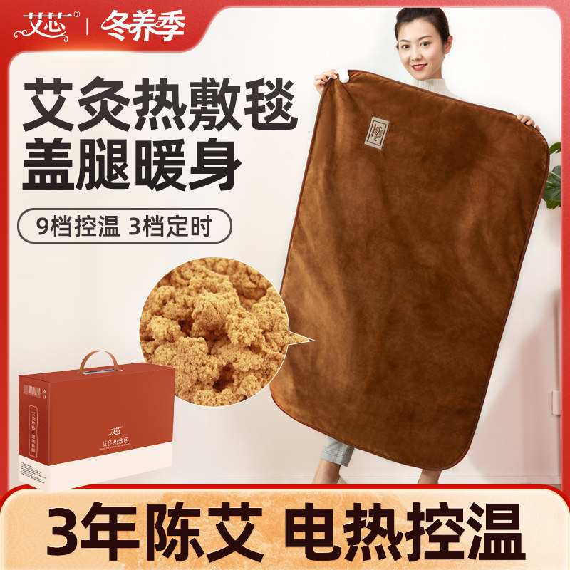 艾芯电加热盖腿护膝暖身毯办公室小电热毯艾绒毯暖垫单人家用2025