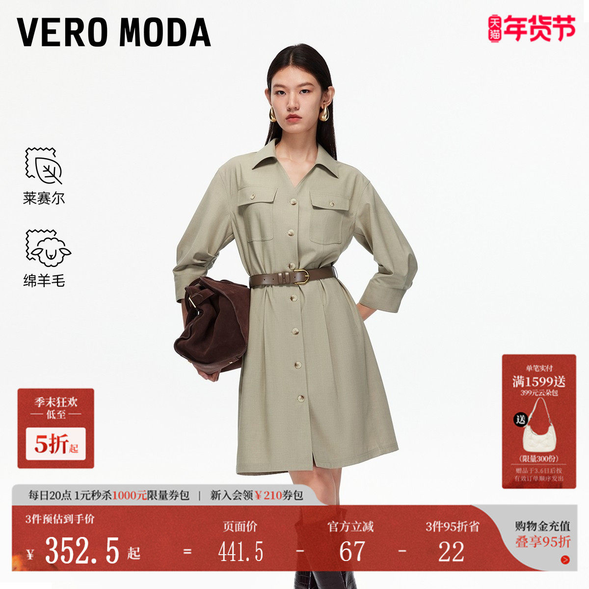 Vero Moda连衣裙2025秋新款含莱赛尔绵羊毛牛仔风衬衫裙3253SZ006