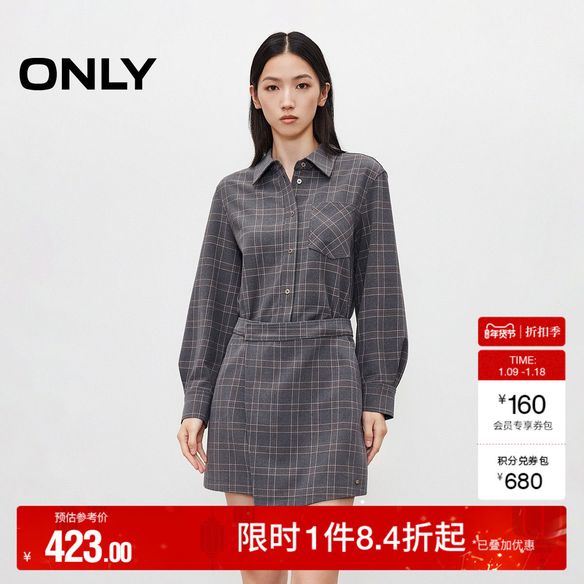 ONLY2025秋冬新款英伦风格纹斜插口袋假两件衬衫裙短裙连衣裙女