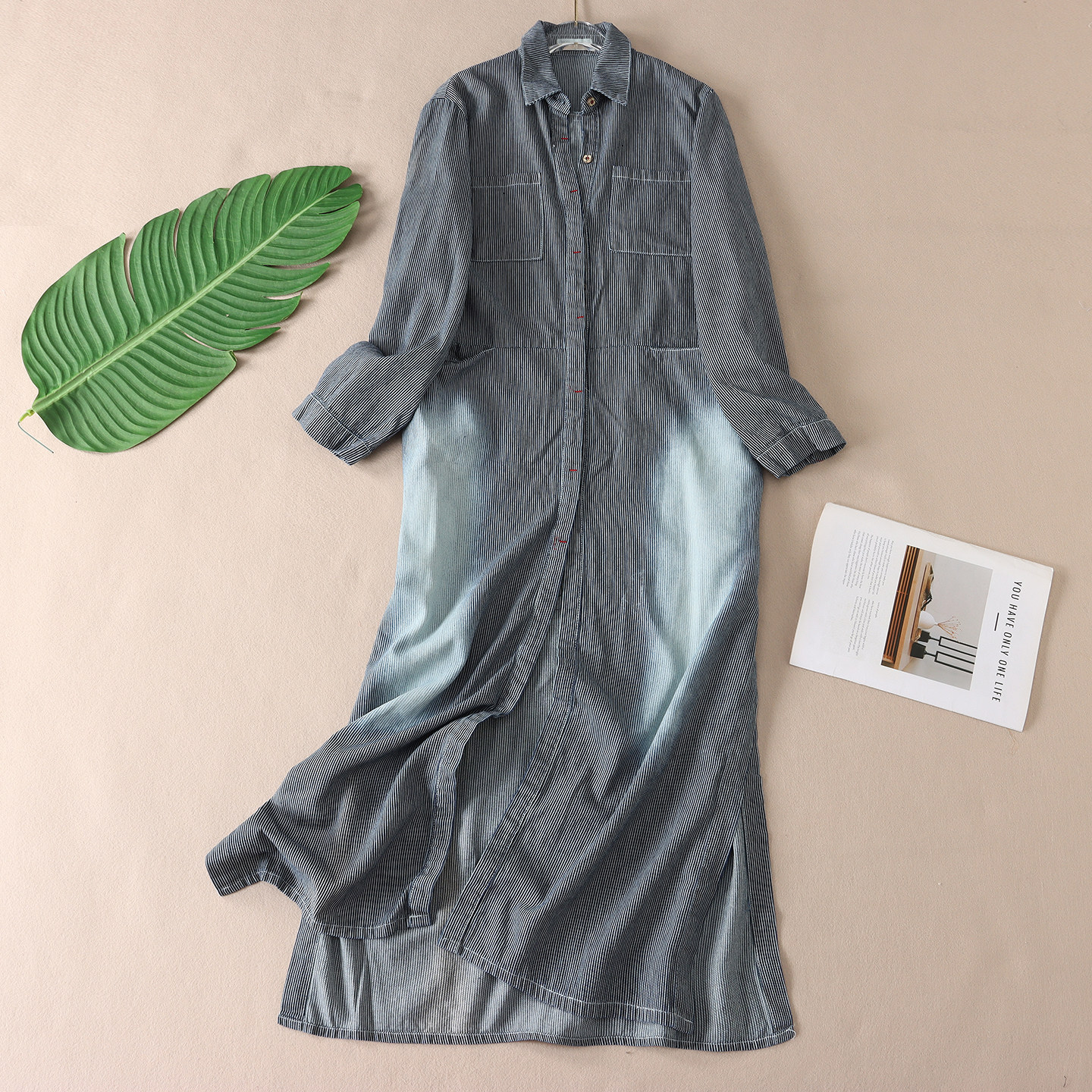 2025欧美风欧洲站韩货棉麻长袖连衣裙女春秋宽松大码超长款衬衫裙