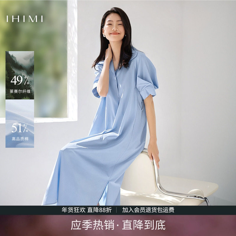 IHIMI海谧云朵衬衫裙莱赛尔棉连衣裙女2025夏季高级感显瘦长裙