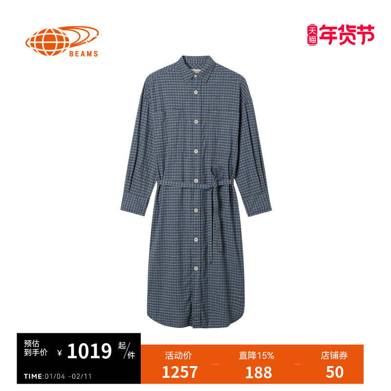 BEAMS BOY女装格纹长袖连衣裙2025冬季新款复古文艺衬衫裙260238X
