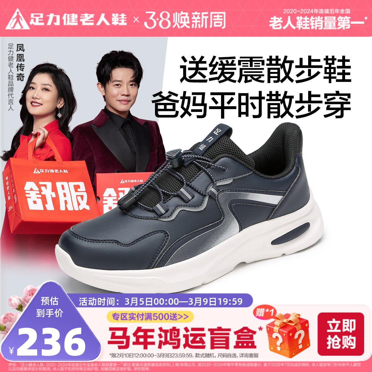 【香菇来了38女神节】足力健春季中老年软底缓震健步鞋防滑散步鞋