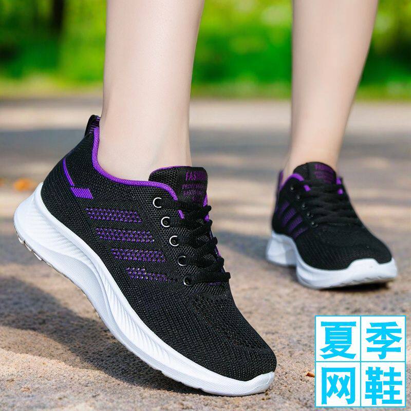 老北京布鞋女妈妈鞋夏季透气轻便中老年健步鞋防滑软底飞织网面鞋