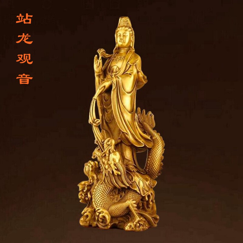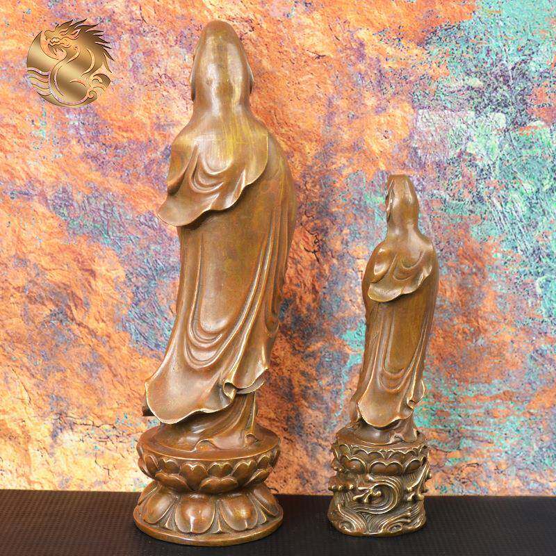 速发实用仿古黄铜铜观音佛像件器礼品摆铜金属工艺品铜站观音佛像