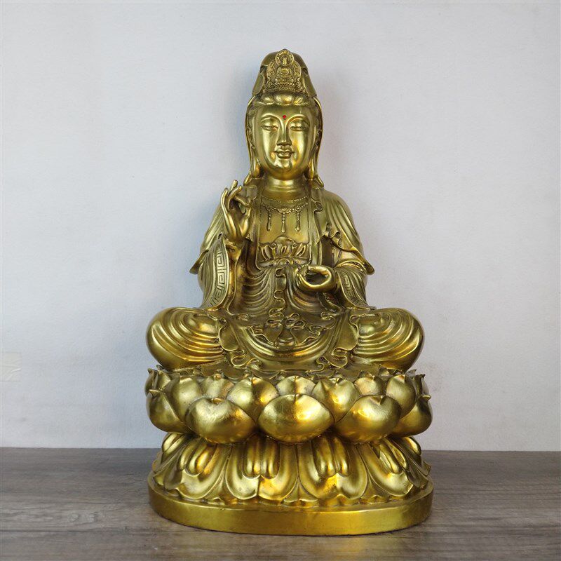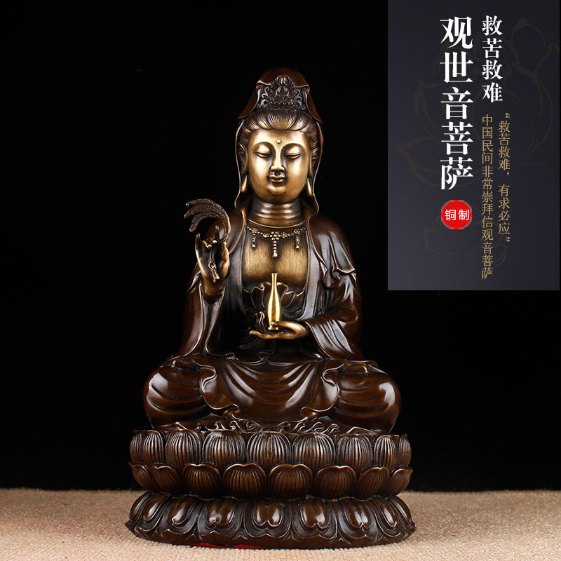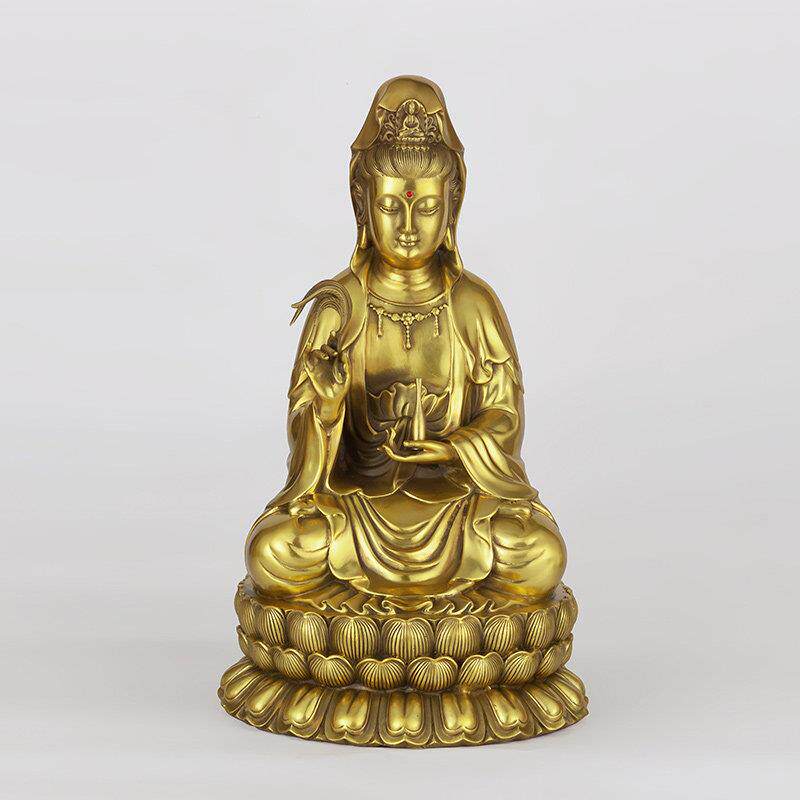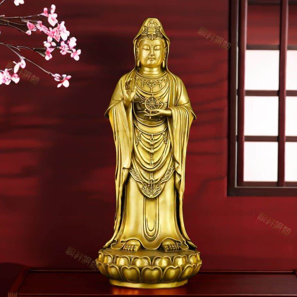 黄铜观音佛像供奉家用铜像摆件坐莲观世音菩萨佛象站像大号观音像