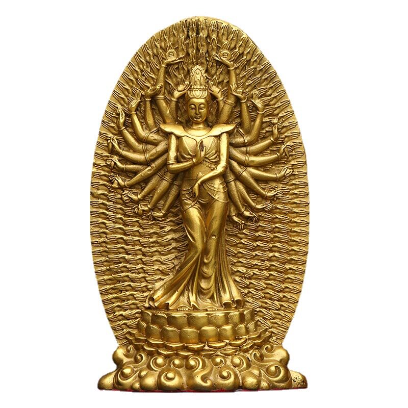 简修行千手观音佛像摆件属鼠本命佛随身黄铜像精致禅意家居装饰品