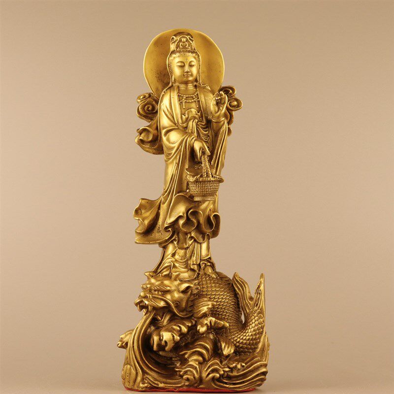 速发黄家提篮铜观音佛像实用吉祥礼居工艺摆件铜品装饰供奉铜摆件