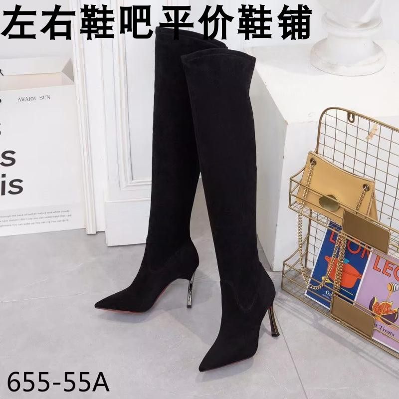 长靴子女2022秋款过膝靴弹力靴细跟高跟尖头过膝靴黑色瘦瘦靴