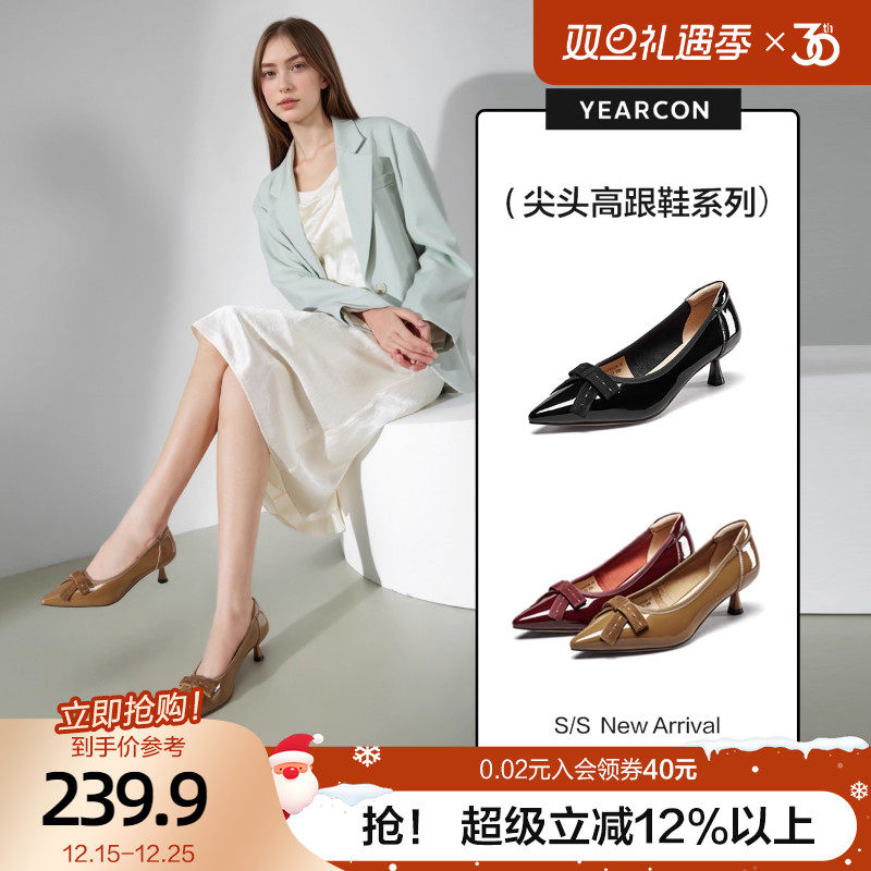 意尔康真皮尖头高跟鞋女2025春秋款蝴蝶结细跟单鞋不累脚妈妈鞋