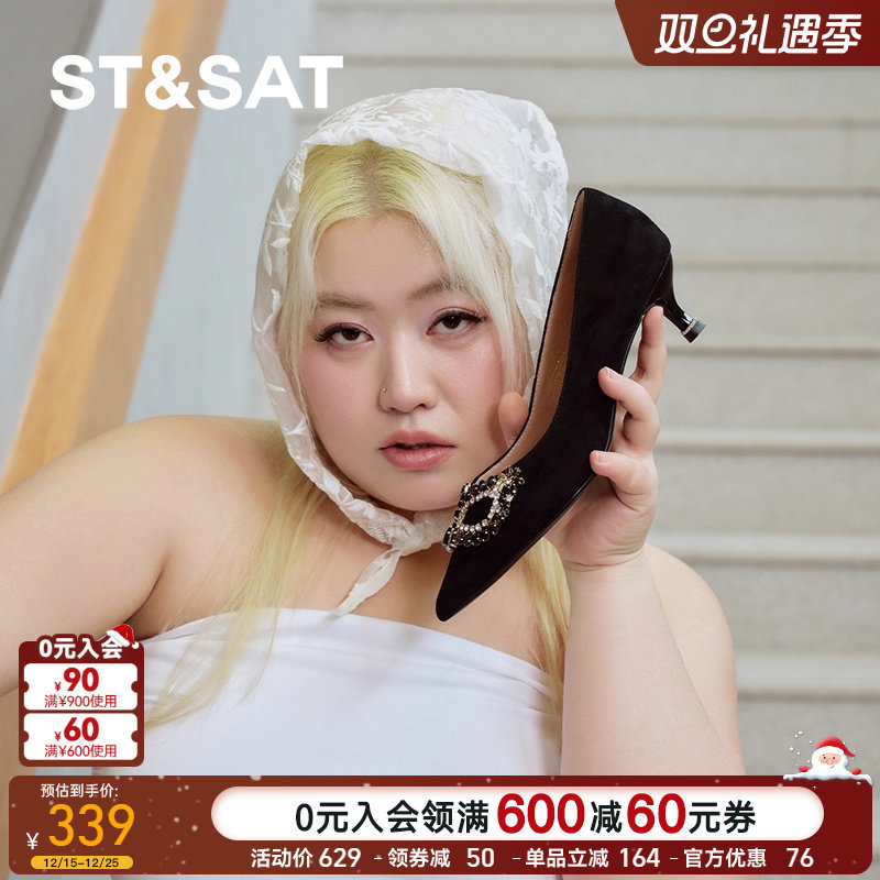 星期六尖头女鞋2025秋款优雅浅口细跟高跟欧美风女单鞋SSD3111086