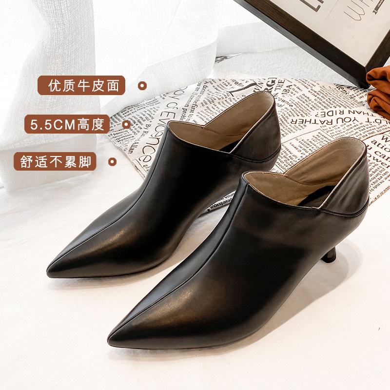 小跟新款尖头低跟细跟单鞋女高跟深口真皮女鞋秋款软皮通勤工作鞋