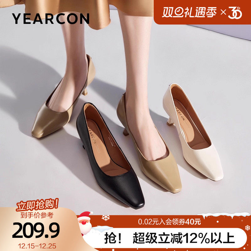 意尔康真皮高跟鞋女2025秋款尖头细跟职业通勤单鞋法式气质工作鞋