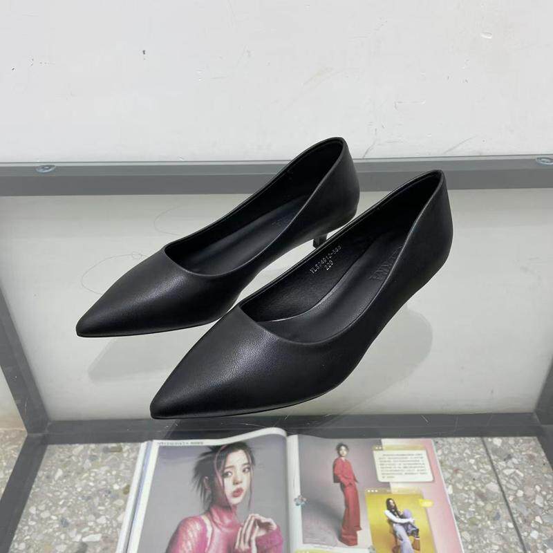 2025新款秋款女鞋软皮细跟深口高跟鞋气质小跟单鞋中跟真皮鞋春秋