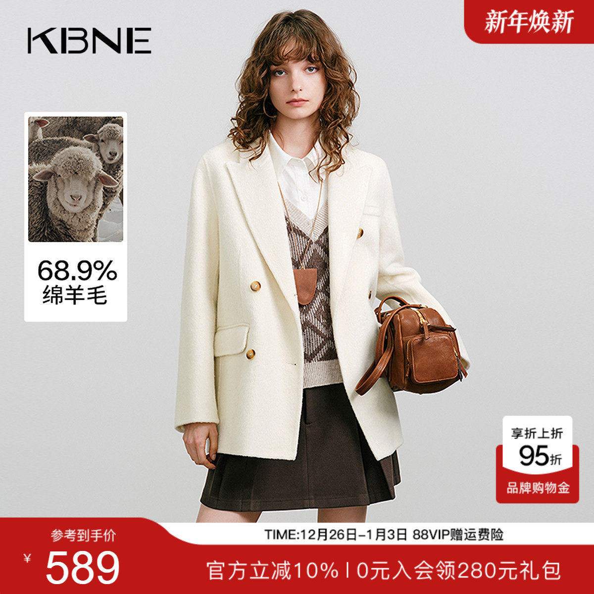 KBNE美丽诺羊毛呢子外套女2025冬季新款白色气质法式短款毛呢西装