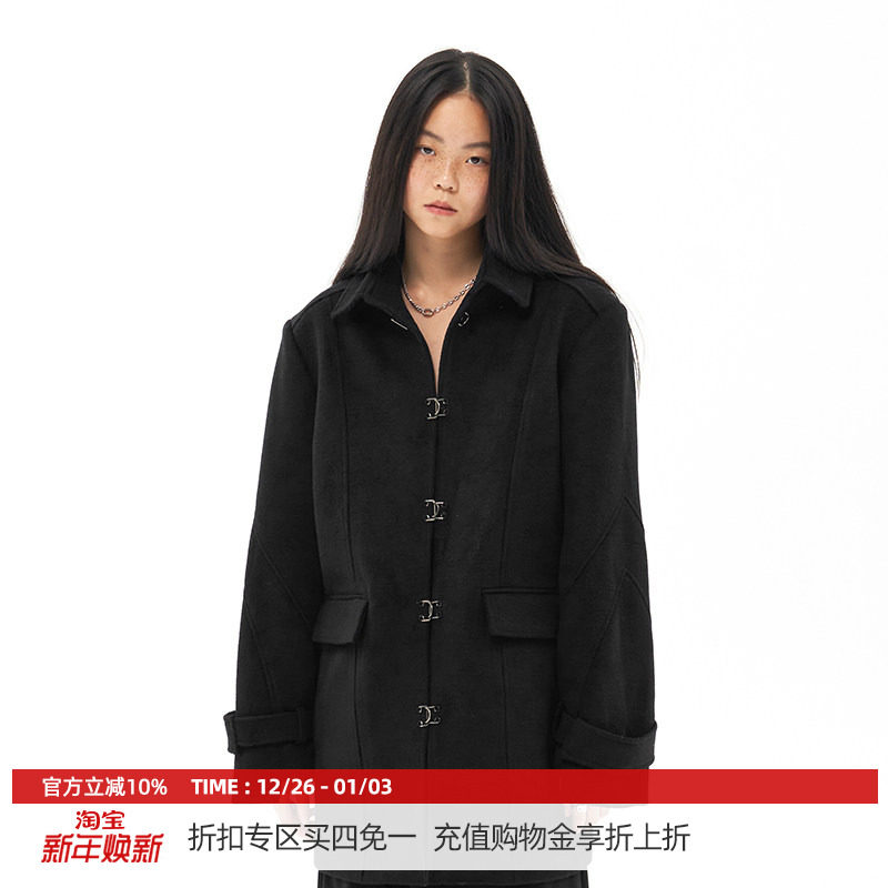 DOSORDONTS 黑羊毛呢中式金属钩扣外套 呢子大衣女秋冬2021新款