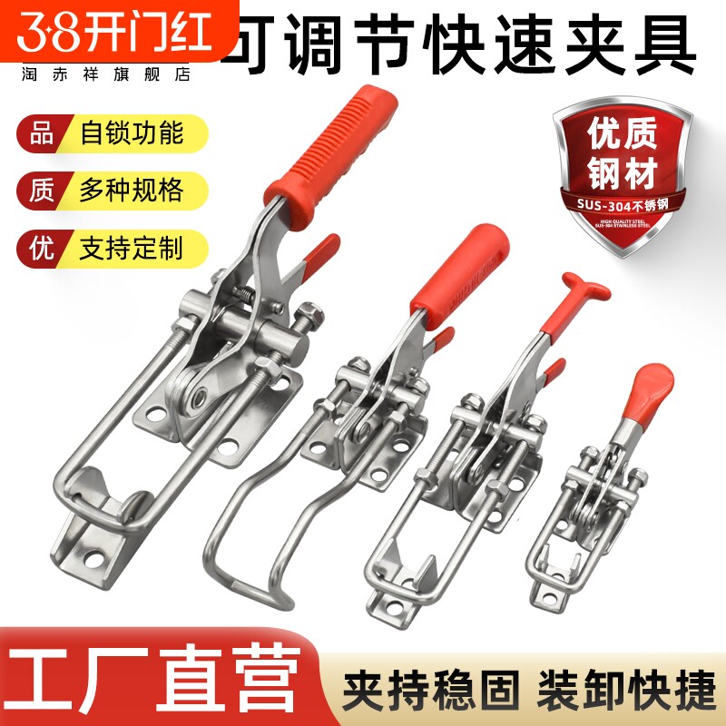 304不锈钢夹具可调节锁扣夹搭扣箱扣夹钳夹持工具快速压紧器门栓