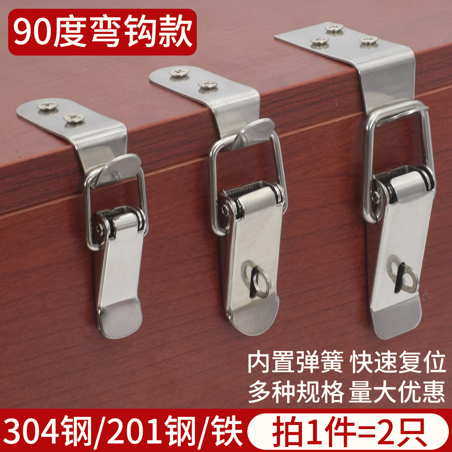 不锈钢304弯钩90度弹簧搭扣锁扣工具箱扣直角扣子鸭嘴扣铁皮箱扣