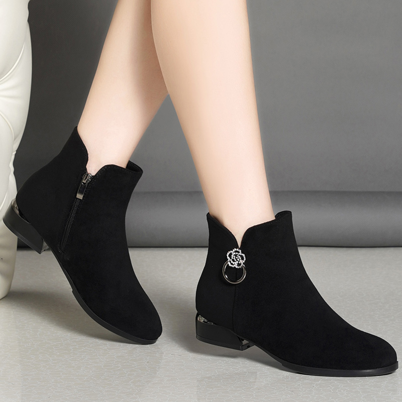 2025秋冬真皮平底短靴磨砂皮百搭女靴大码软底妈妈鞋中年加绒棉鞋