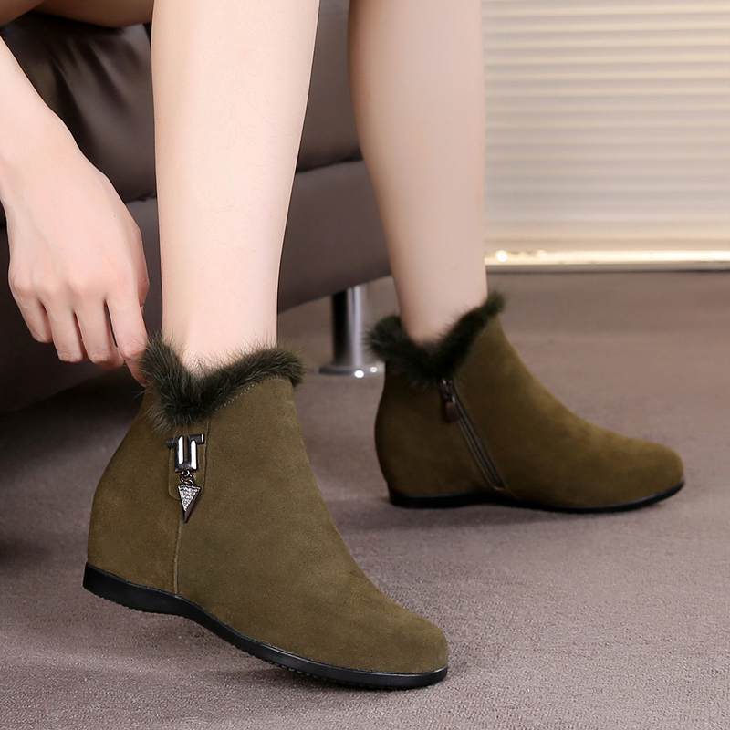 2025新款秋冬季平底磨砂真皮内增高小短靴坡跟女鞋加绒大码女靴子