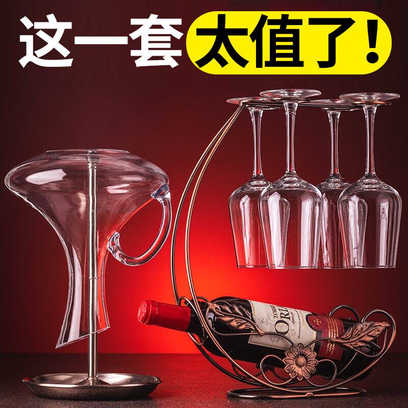 勃艮第红酒杯套装水晶醒酒器一体架高脚杯子家用酒具轻奢高档一套